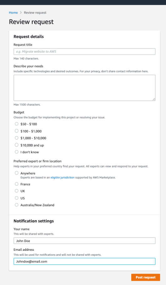 - Market your AWS skills: Experts can build a profile showcasing their AWS Certifications, professional experience, and ratings and reviews from previous projects. It also helps customers gain confidence in their skills and choose the right expert for their project.