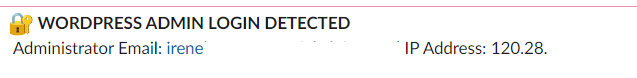 $adminLog = "*:closed_lock_with_key: WORDPRESS LOGIN DETECTED* \n Administrator Email: " . $user->user_email . " | IP Address: " . $user_ip . ";